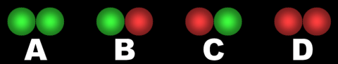 Two lights × two colors = four combinations.