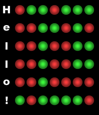 Seven flashlights, on the other hand, gives us 128 combinations, which is plenty for the English alphabet, the digits, lots of symbols, and plenty of control characters. Now our messages can use normal text and punctuation.