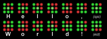 “Hello, World!” using nine green-red flashlights.