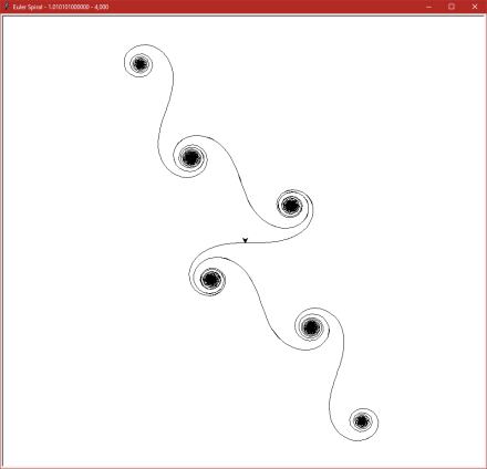 theta=1.1010101 andsteps=3000:Here’s the Euler Spiral for