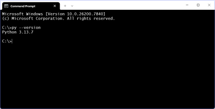 Windows Users: Once you install Python, open a command window (press the Windows key (⊞) and type cmd and press [Enter]). This opens a window with a prompt. Type py --version: