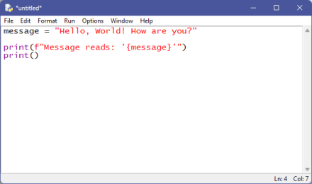 The new window has no text, so let’s type a very simple Python script: