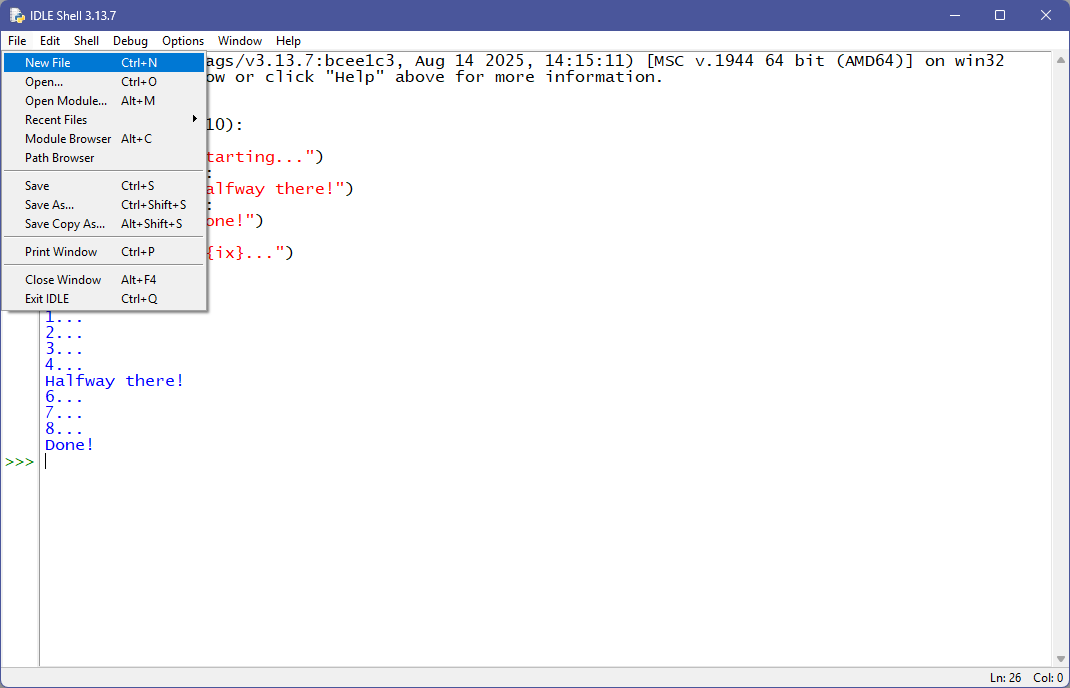 Open the IDLE File menu: